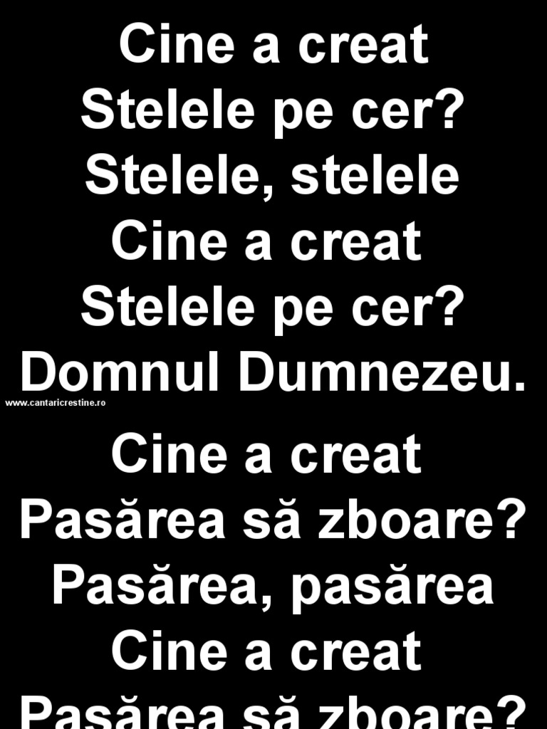 Chords for cine a creat stelele pe cer. În această serie de emisiuni copii vor descoperi că prin înțelepciune dumnezeu a întemeiat pamintul și a creat toate 1. Cine păcătuieşte, este de la diavolul, căci diavolul păcătuieşte de la început. 1 ioan 3:8.
